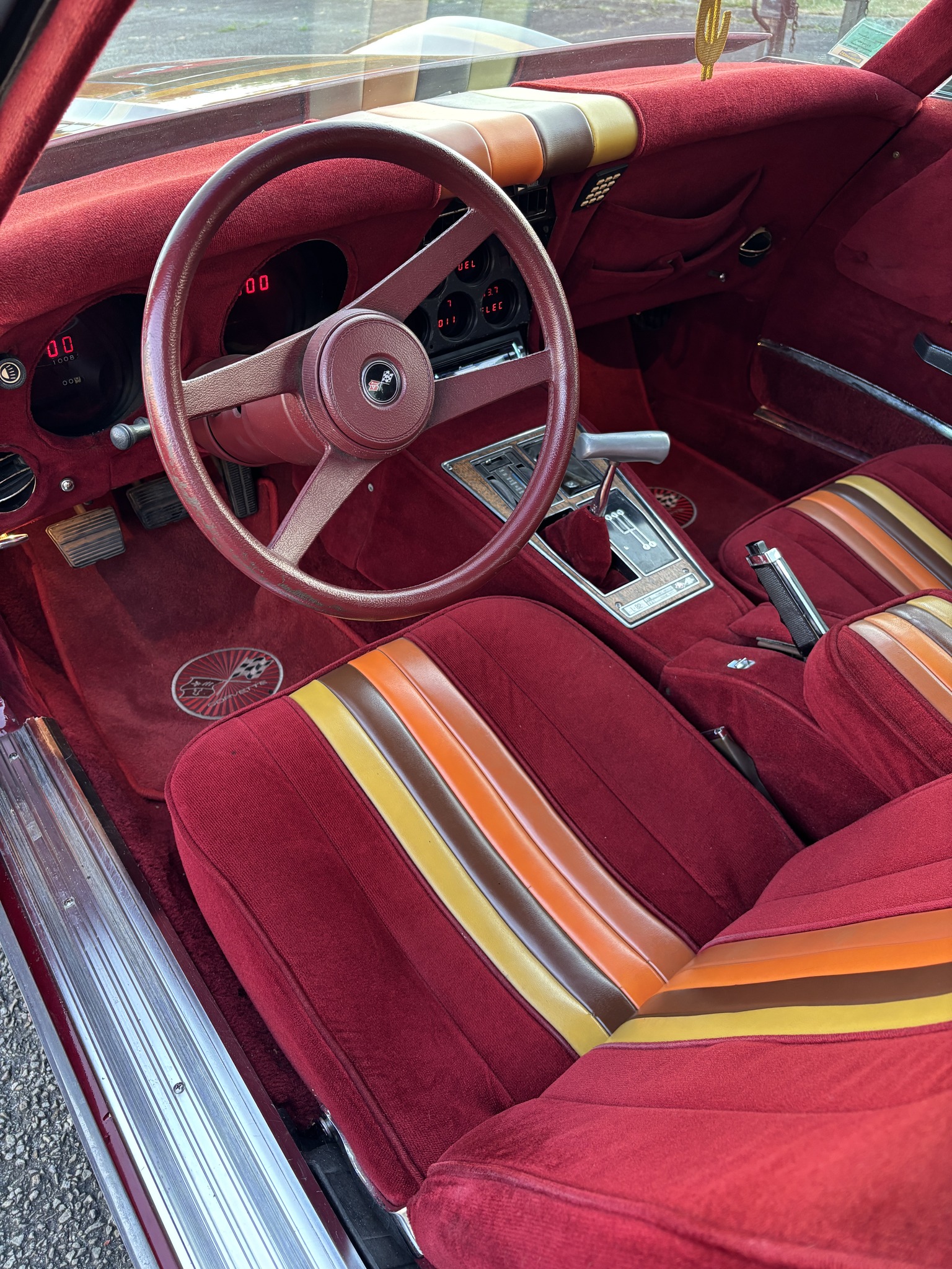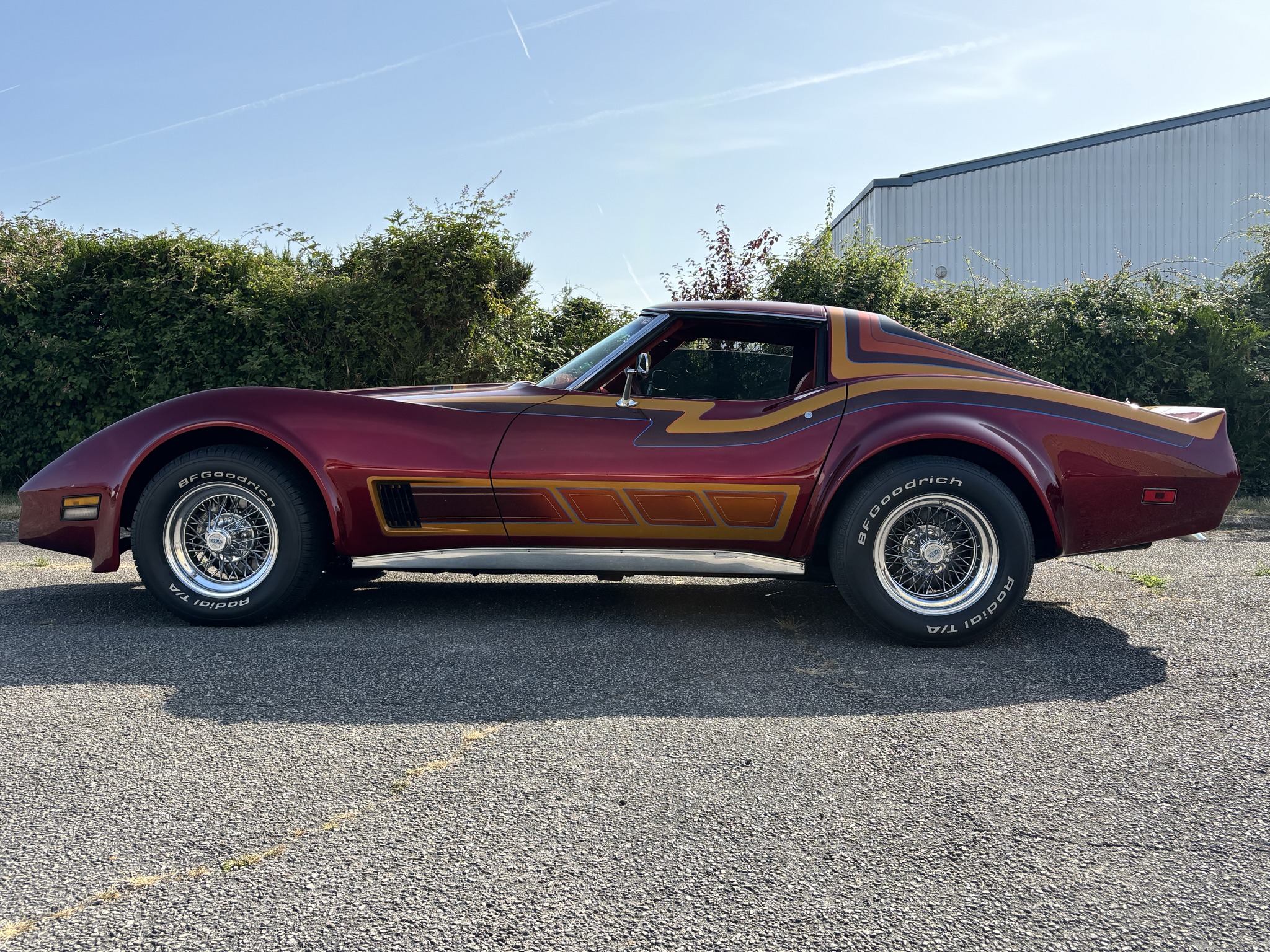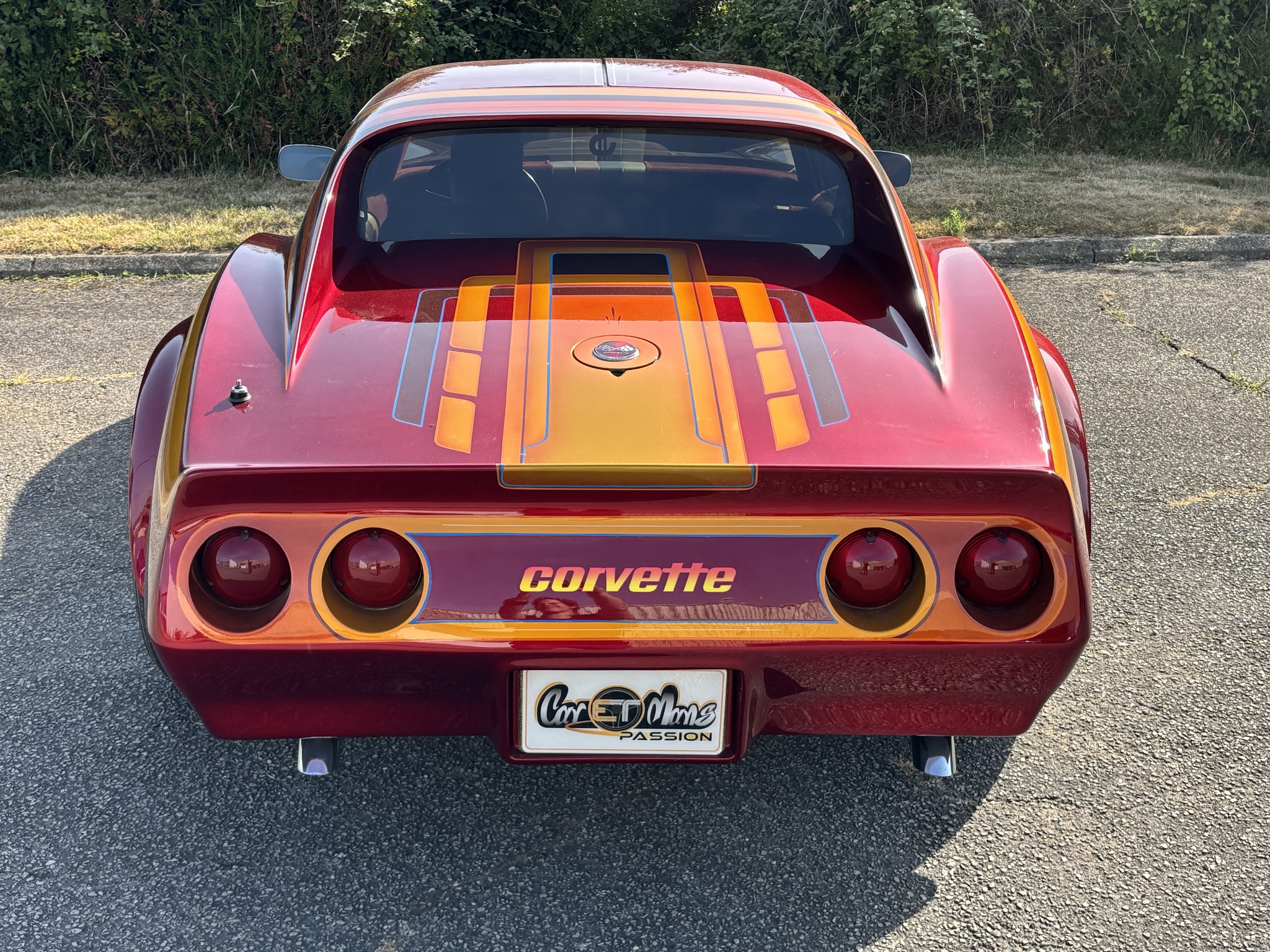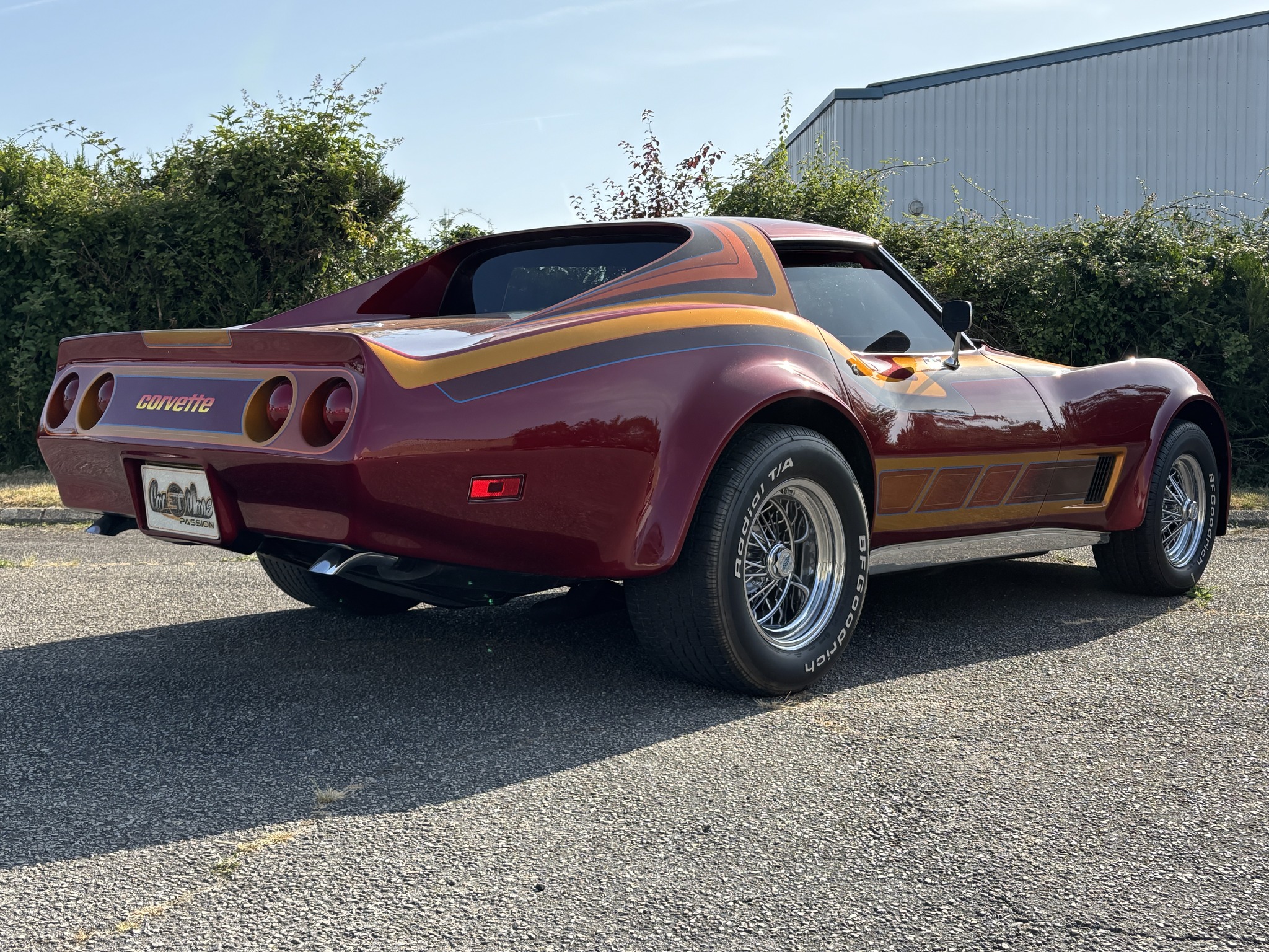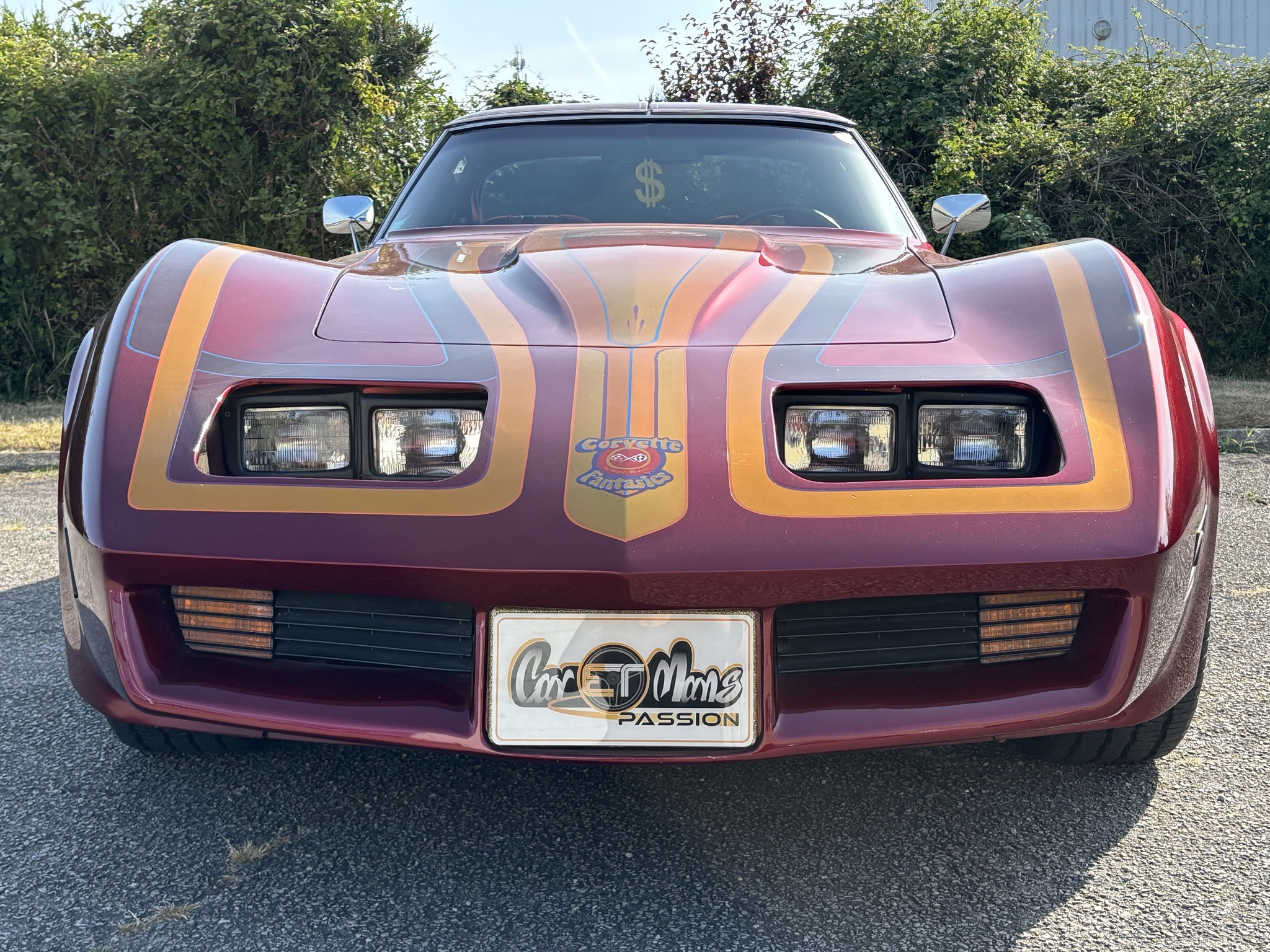 Cette Chevrolet Corvette C3 de 1976 avec son moteur V8 5,7L, en boite mécanique 4 vitesses, avec 61 008 Miles au compteur. Cette Corvette C3 unique a été personnalisée par Corvette Fantaisies à Las Végas au Nevada, il y a environ 30 ans (Plaque dans la porte l'attestant).
